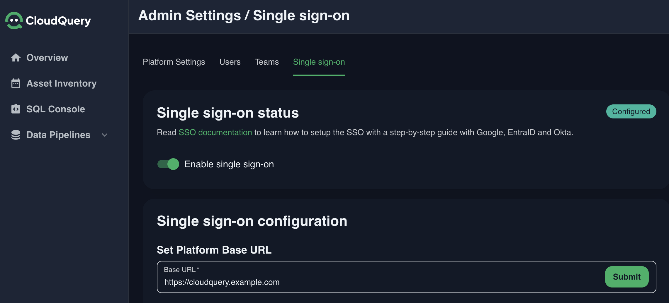 Configuring the platform base URL in CloudQuery